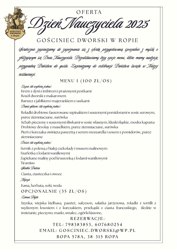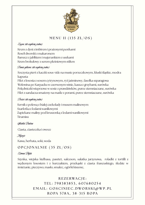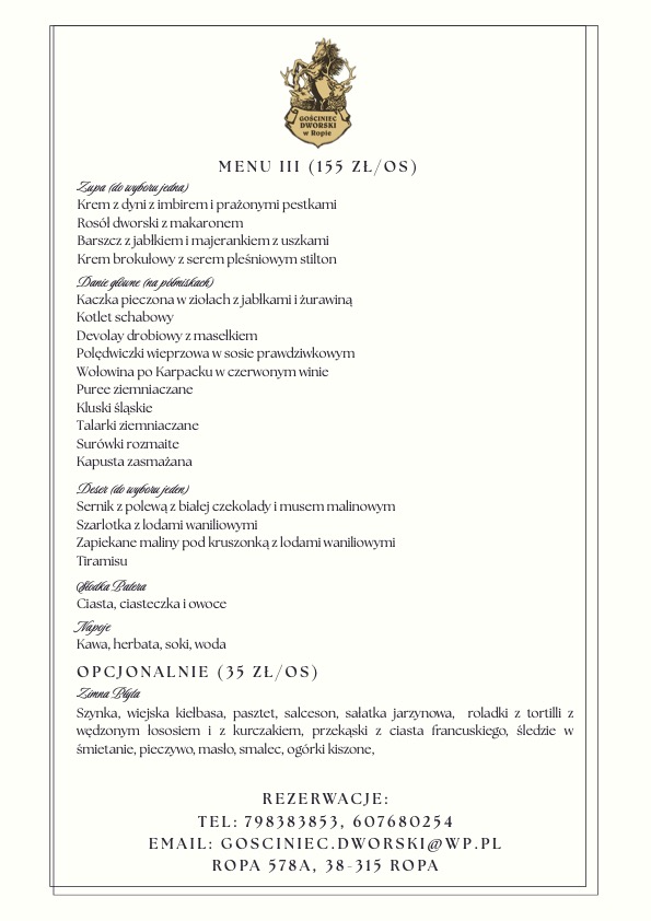 Menu Restauracji
