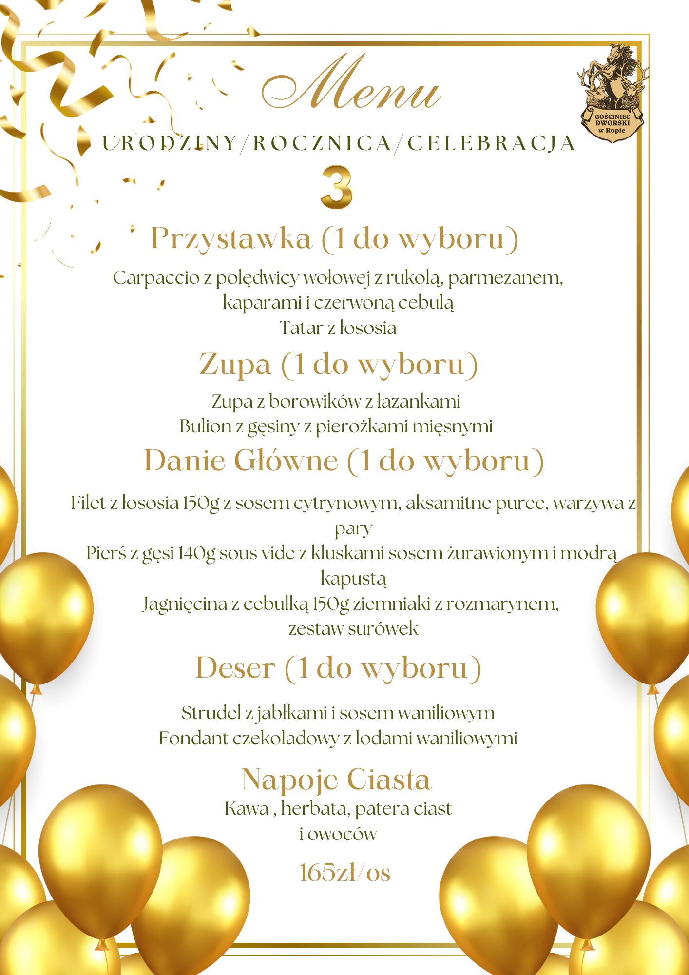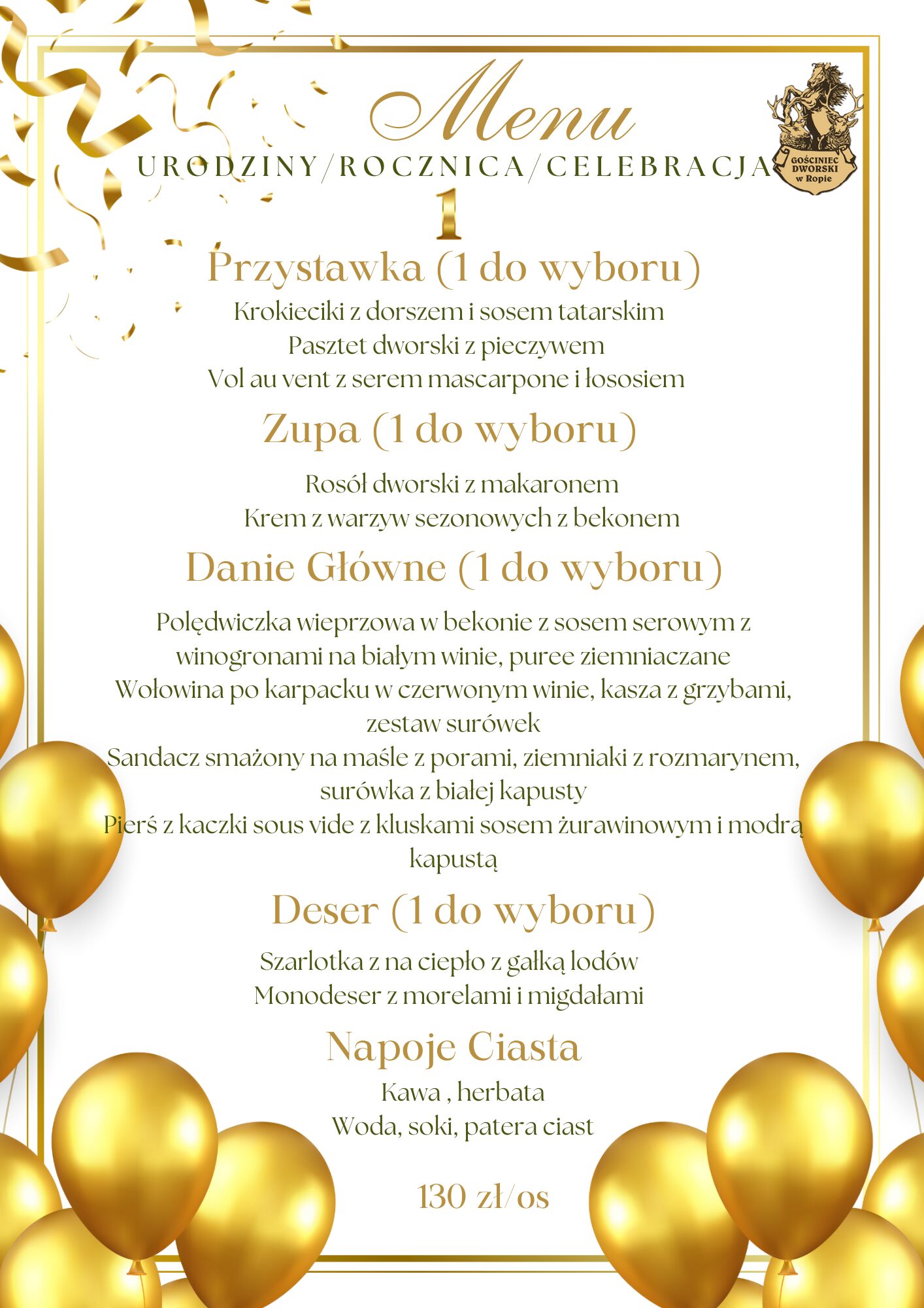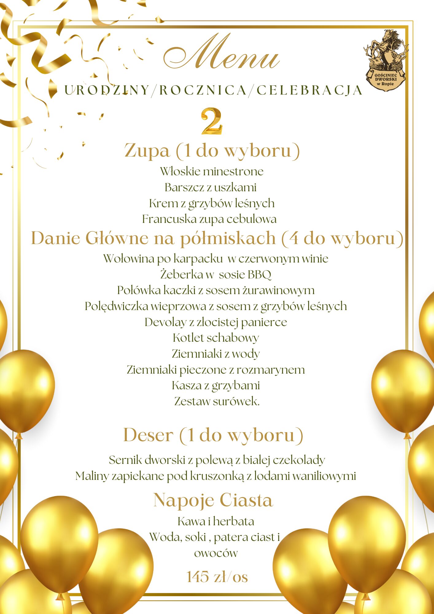Menu na przyjęcia okolicznościowe, urodziny 40stka 50tka 60tka 70tka